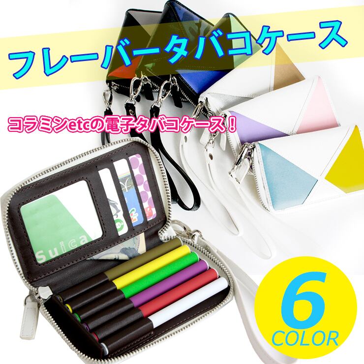 フレーバータバコケース カード入れ付き トリコロシリーズ(全6色) コラミンやビタシグなどの電子タバコのケースが欲しかったあなたに。 オシャレなケースに入れて持ち運びたいあなたに。 コラミンなどのフレーバータバコがピッタリと6本も入る専用ケースです。 ビタシグやビタボン等の電子たばこも入ります。 更にカードが3枚入るポケットもあります。 【カラー】全6色(画像をご覧下さい。) 【素材】PUレザー 【サイズ】本体:約13.5cm×8cm×2cm 持ち手:約18.5cm (持ち手は取り外し可能)