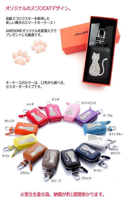 高級スワロフスキーを使用した美しい輝きのスマートキーケース♪