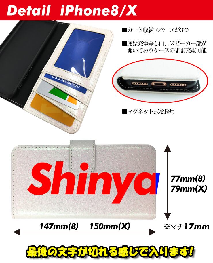 文字切れ名入れ iPhone7 iPhone8 iPhoneX XS 専用ケース 手帳型 マグネット アイフォン8 アイフォン10 印刷 ラメ ハート シンプル レディース プレゼント アイフォンカバー アイフォンケース アイフォンテン