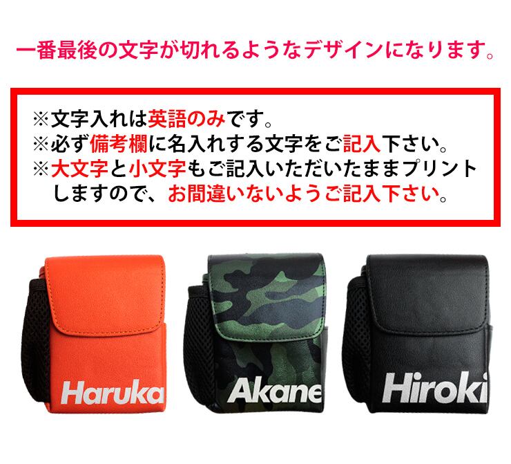 文字切れ名入れ レザー調 レーザー距離計ケース (全8色) ゴルフボールもティーも入る! オリジナル名入れ ゴルフ ティー プロゴルファー Nikon Bushnell STINGER GARMIN ゴルフ用 GOLF ケース 収納 カラビナ付き ベルトループ付き 迷彩
