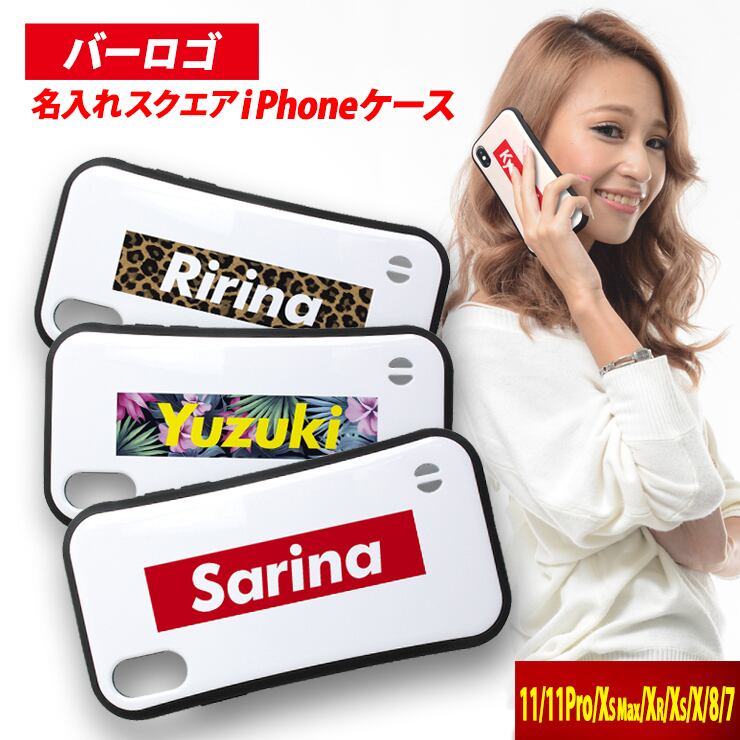 バーロゴ 名入れ スクエア iPhoneケース iPhone13 / iPhone13Pro / iPhone12 / iPhone12Pro / iPhone12mini / iPhone12ProMax / iPhone11Pro /XSMax/XR/XS/X