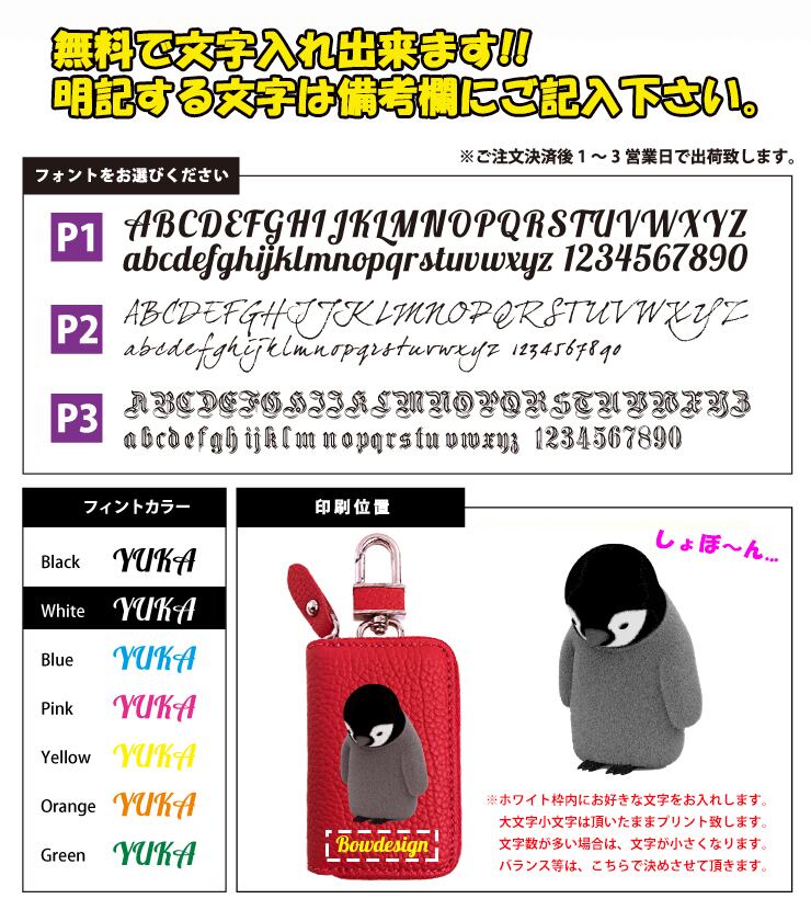名入れも可能♪ Bow ペンギン スマートキーケース