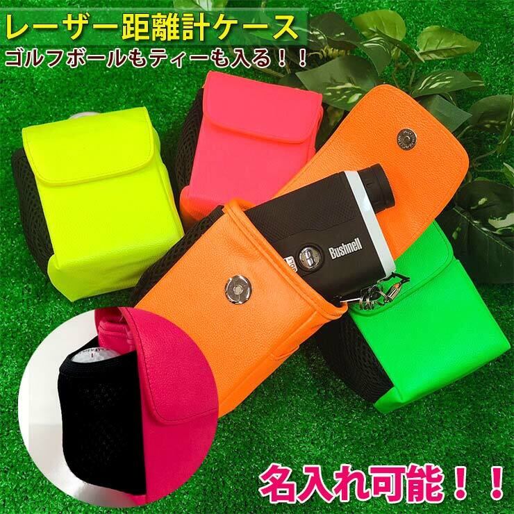 【名入れ可能】レザー調 レーザー距離計ケース 蛍光タイプ(全4色) ゴルフボールもティーも入る! ゴルフ ティー プロゴルファー ゴルフ用 GOLF Nikon Bushnell STINGER GARMIN ケース 収納 カラビナ付き ベルトループ付き