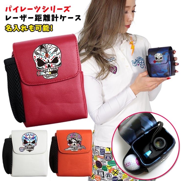 【名入れできる】パイレーツシリーズ レザー調 レーザー距離計ケース ゴルフボールもティーも入る! 海賊 スカル ドクロ 髑髏 骸骨 ゴルフ プロゴルファー ゴルフ用 GOLF Nikon Bushnell STINGER GARMIN ケース 収納 カラビナ