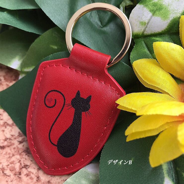 ハートキャットシリーズ 盾型キーホルダー (全3色) 【カラー】 ブラック/レッド/ホワイト ※ブラックの商品は、白(ネコ)印刷となります。 【素材】 本革 ※2~3営業日後の発送となります。