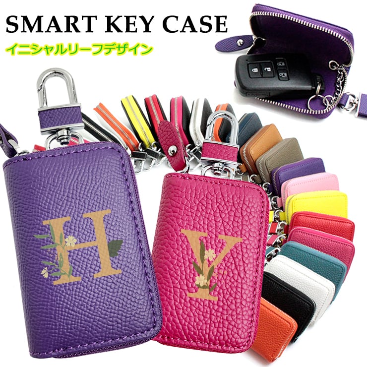 イニシャルリーフデザイン スマートキーケース 本革 スマートキーケース (全22色) スマートキーカバー ナチュラル プレゼント 本格レザー スマートキー キーケース