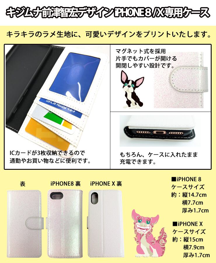 沖縄のイラストレーター前津デザイン iPhone7 iPhone8 iPhoneX XSケース (イヌ ネコ シーサー) プリント 手帳型 マグネット アイフォン8 アイフォン10 アイフォンX 印刷 ラメ 猫 キャット 犬 アイフォンカバー アイフォンケース アイフォンテン