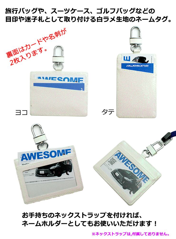 【名入れ可能】ネームタグ(カード入れ付) 白ラメ カラビナ付き