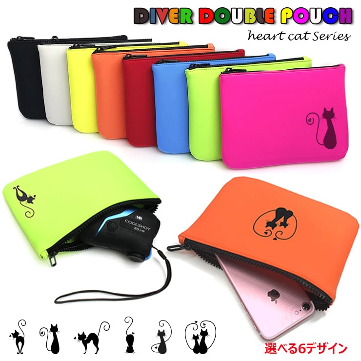HEART CAT デザイン ダイバー素材ポーチ(全8色)