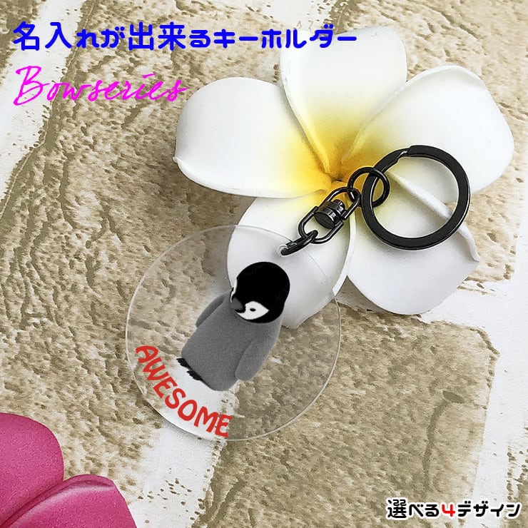 BOWデザイン 名入れ アクリルキーホルダー(丸型) ペンギン キャット 黒猫 猫 蜜蜂 蜂 ハチ オーダー オリジナル 直径5cm キーホルダー バッグチャーム スマートキー 家のカギ 鍵 おしゃれ かわいい プレゼント