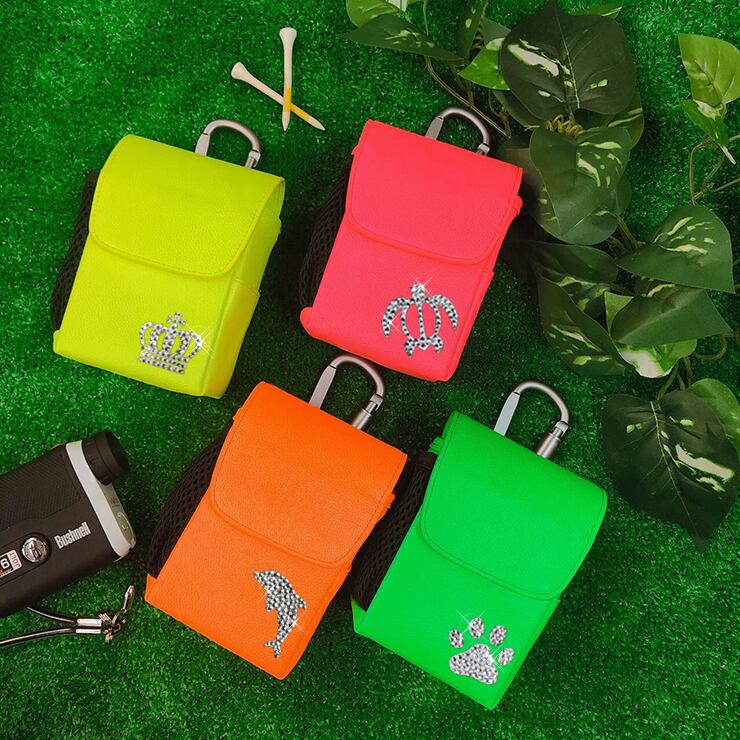 デザインスワロデコ レザー調 レーザー距離計ケース(全12色) ゴルフボールもティーも入る! ゴルフ ティー プロゴルファー ゴルフ用 GOLF Nikon Bushnell STINGER GARMIN ケース 収納 カラビナ ベルトループ付き スワロフスキー デコ