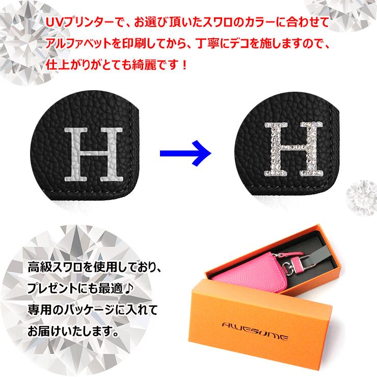 そこにお好きなアルファベットとスワロデコで、完全オリジナルのスマートキーケースに♪