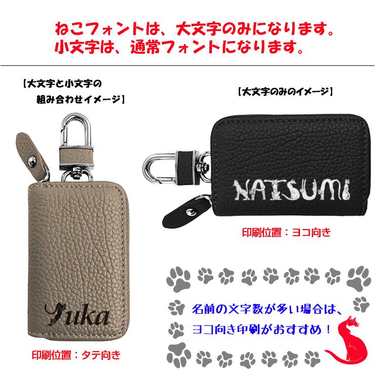 ねこフォント名入れ スマートキーケース 本革 全22色