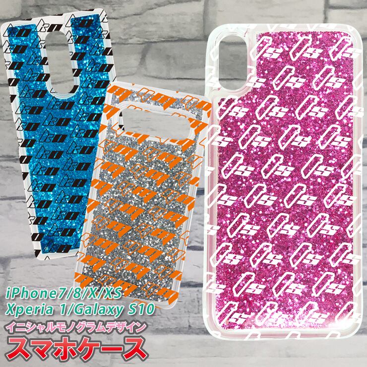 イニシャルモノグラムデザイン キラキラ動くグリッター スマホケース