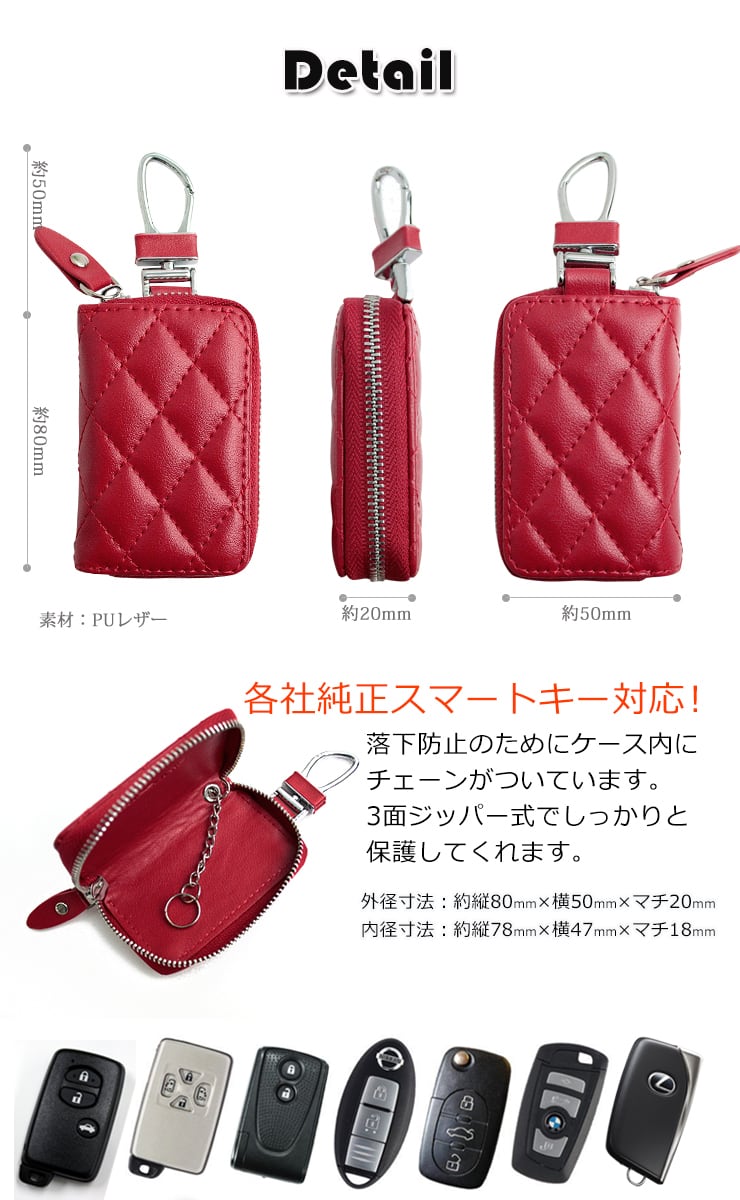 キルトデザイン スマートキーケース (全3色) キーケース スマートキー 家の鍵