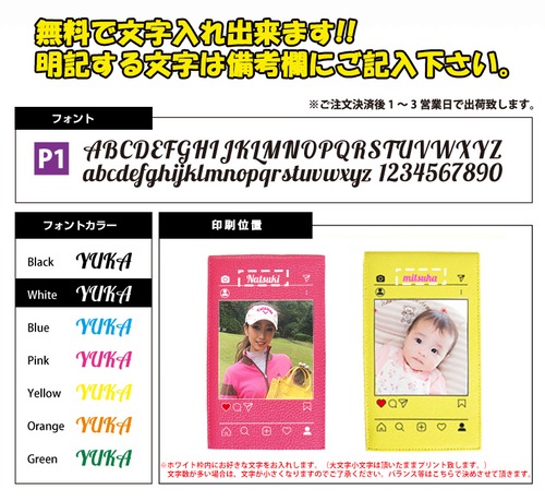 ※名入れする英語とフォントカラーは必ず備考欄にお書き下さい。(大文字と小文字もそのままプリントするのでお間違いないようお願いします。)