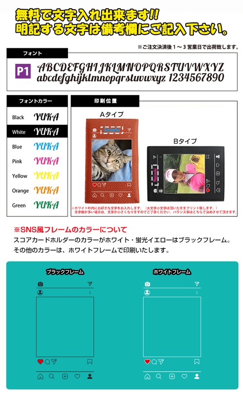 SNS風 写真印刷 ゴルフスコアカード用ケース(2タイプ)