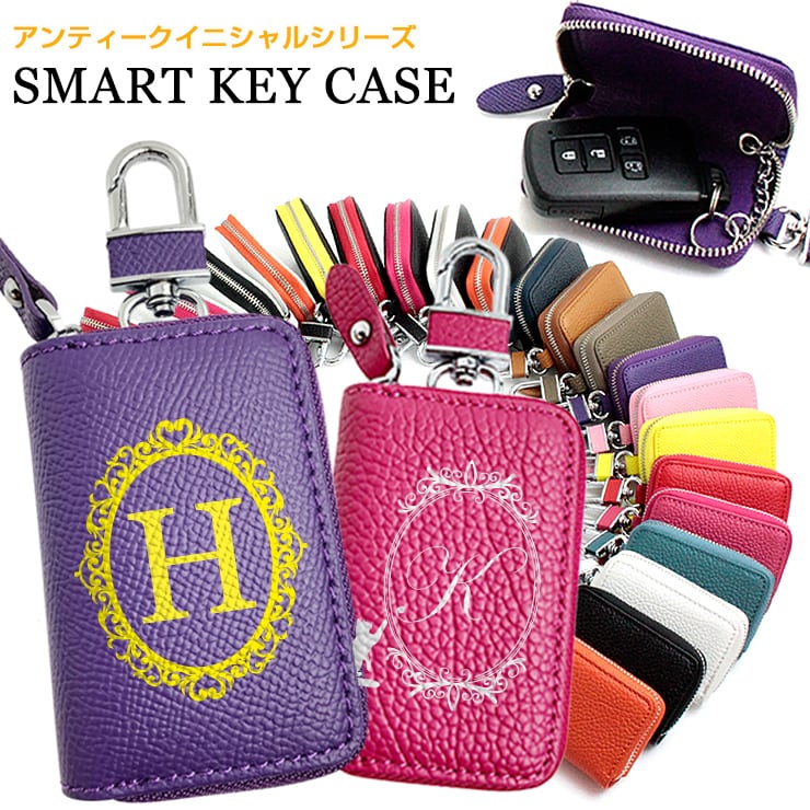 アンティークイニシャル スマートキーケース 本革 スマートキーケース(全22色)