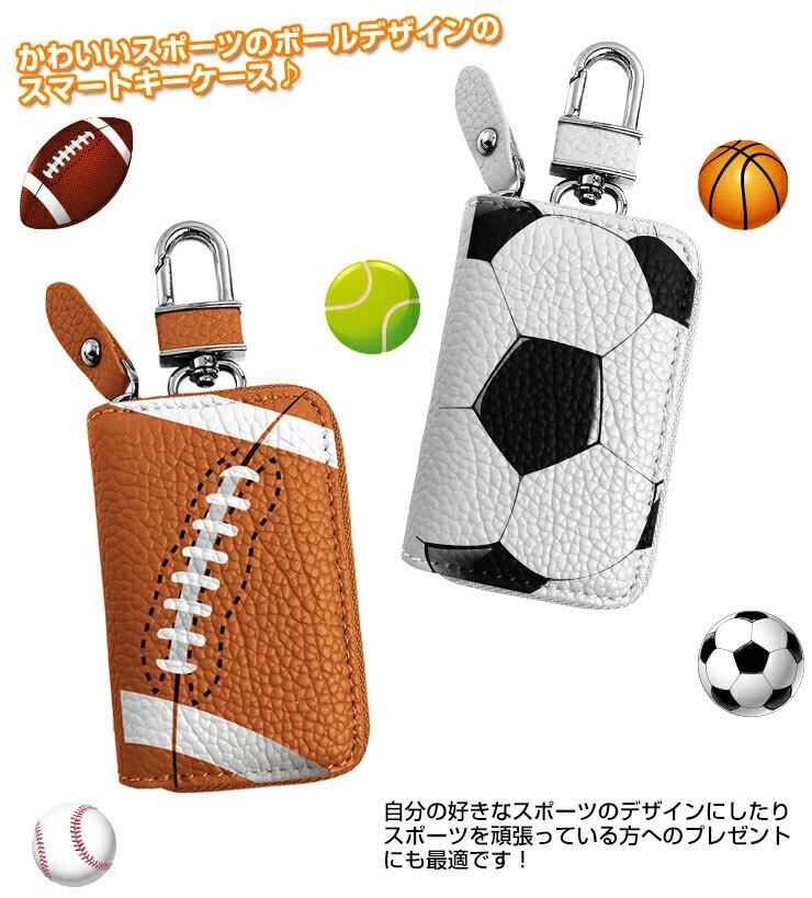 本革 ボールデザイン スマートキーケース(全12種) 表面だけのデザインプリントとなります。 ボールのデザインがプリントされた、おしゃれでかわいいスマートキーケース 箱入りなので、プレゼントにも最適です。 スマートキーケースは職人の手による縫製で作りが丁寧なほか、キー本体の出し入れがしやすいように、3面が開くジッパーを採用。 また、キーケース内に収めたスマートキーの無用な落下を防止するため、キーチェーンも内臓した親切設計。 【スマートキーケースサイズ】横:約5cm 縦:約8cm 厚み:約2cm