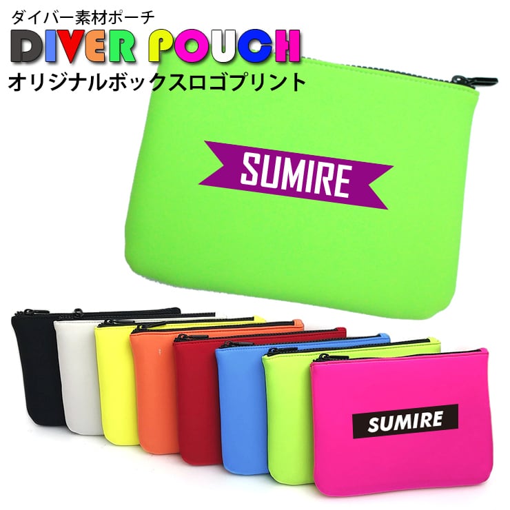 名入れ ボックスロゴプリント ダイバー素材ポーチ (全8色)