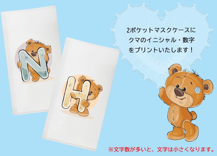 イニシャル・数字 ベア 2ポケット マスクケース ホワイト