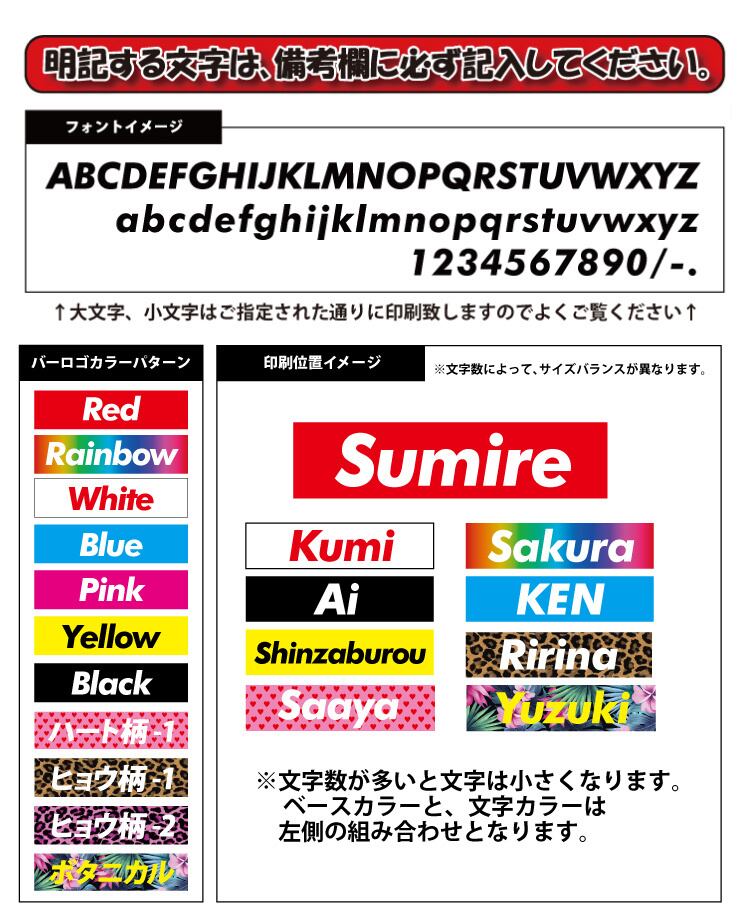 ※名入れする英語とバーロゴカラーパターンは必ず備考欄にお書き下さい。(大文字と小文字もそのままプリントするのでお間違いないようお願いします。)