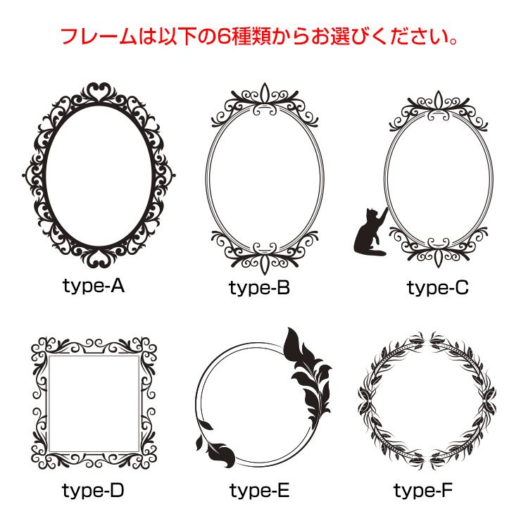 ※ご希望のフレームデザイン(タイプA~F)とフレームカラーとイニシャル(A~Z)とイニシャルフォント(A1orH2orP3)とイニシャルカラーと背景(有りor無し)を必ず備考欄にお書きください。