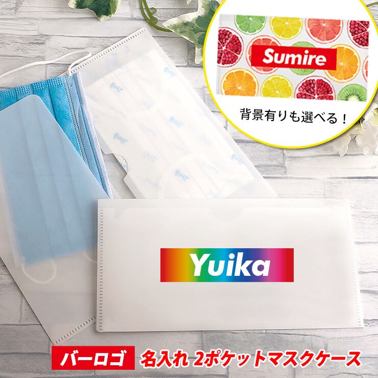バーロゴ 名入れ 2ポケット マスクケース ホワイト