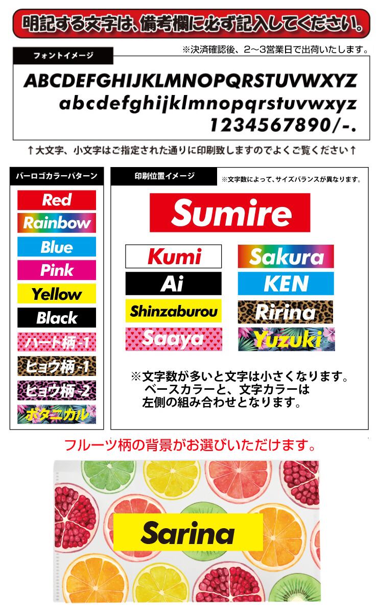 ※名入れする英語と背景(有りor無し)とバーロゴカラーパターンは必ず備考欄にお書き下さい。