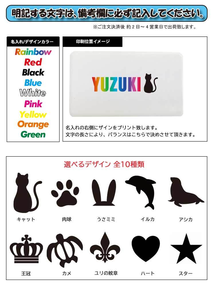 ※名入れする英語とフォントカラーとデザイン(10種類)とフォントカラーは必ず備考欄にお書き下さい。(大文字と小文字もそのままプリントするのでお間違いないようお願いします。)