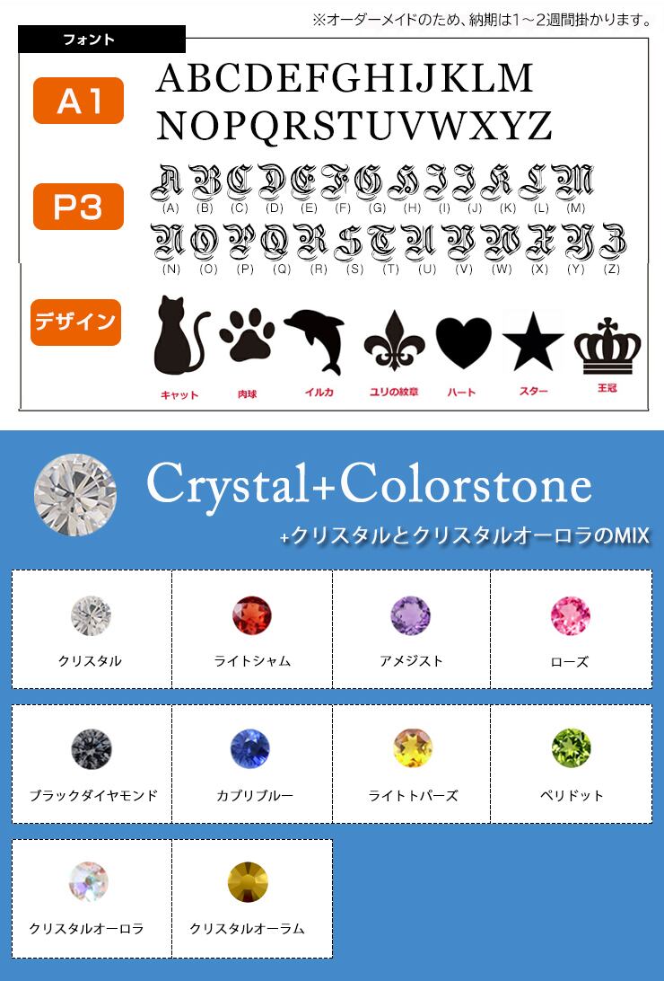 2種類のフォントと9色のカラーから、お好きなアルファベットを、お選びいただいたストーンカラーに合わせてプリントしてから、丁寧にデコレーションいたします!