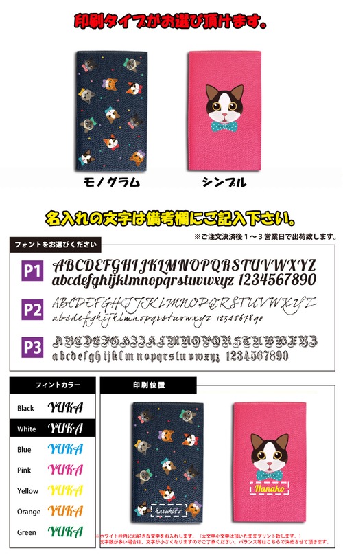 ※印刷タイプ(シンプルタイプA~Gまたはモノグラムタイプ)とシングルタイプの場合はリボンのカラーと名入れ希望の場合は名入れの文字とフォントとフォントカラーを必備考欄にお書きください。