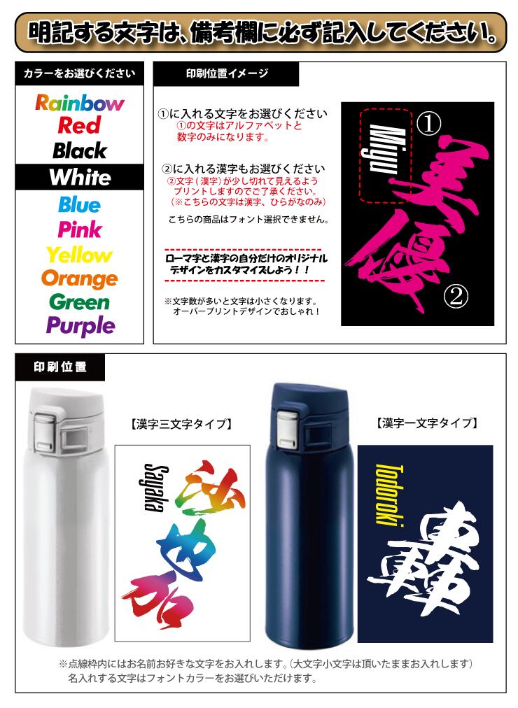漢字名入れ ワンタッチカービングサーモボトル 360ml (全3色)