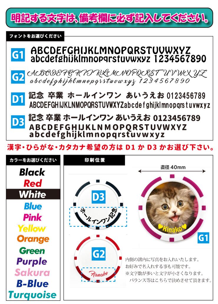 ※表面に文字入れをする場合は文字とフォントデザインとフォントカラーを必ず備考欄にお書きください。