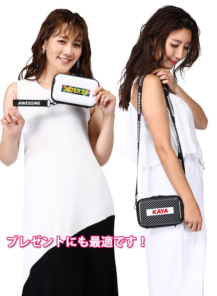 バーロゴ名入れ カーボン調 フラット ミニハードケース (全2色)【AWESOME/オーサム】