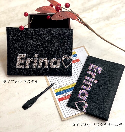 文字切れ名入れが出来る スワロフスキー デコ ゴルフスコアカードホルダー (全10色/2タイプ)