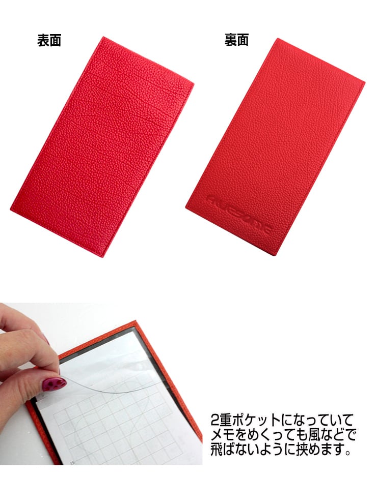 内ポケットが二つ付いており、メモをめくっても風などで飛ばないようになっています。