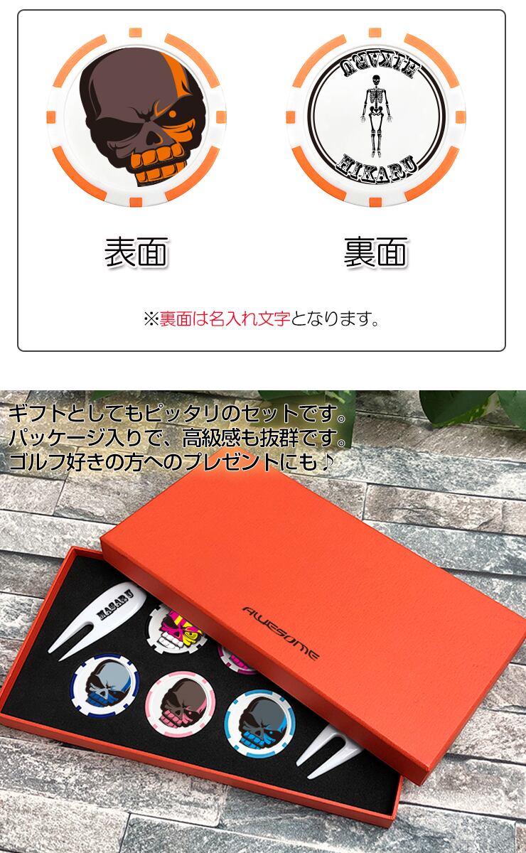 名入れ デンジャラス★スカルビッグフェイス ゴルフマーカー&フォーク セット