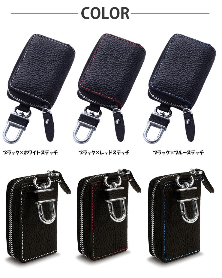 スマートキーケースは職人の手による縫製で作りが丁寧なほか、キー本体の出し入れがしやすいように、3面が開くジッパーを採用。