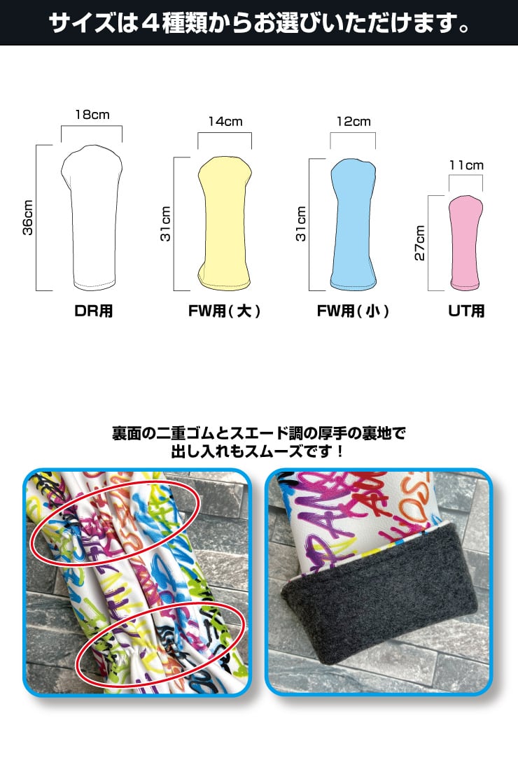 全面印刷 カスタムプリント ゴルフヘッドカバー 単品 全4サイズ フルオーダー ラウンド用品 ゴルフ用品 オリジナル