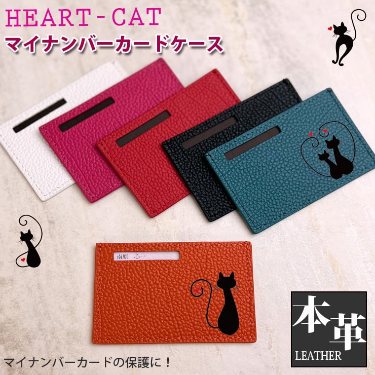 HEART-CATプリント 本革 マイナンバーカードケース (全10色) 目隠し レザー 革 氏名 住所 個人番号 プライバシー保護 個人番号カード カード入れ マイナンバーカード入れ キャット