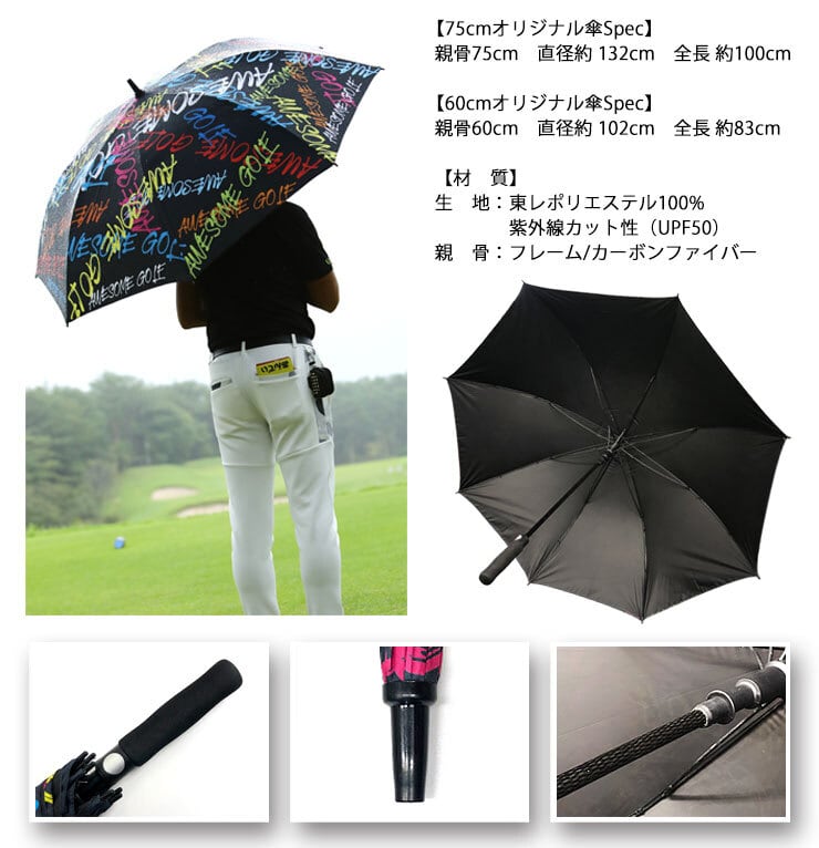 AWESOME 傘 大判75cm 60cm 晴雨兼用 アンブレラ ゴルフ傘 パラソル UVカット 巨大傘 レディース メンズ 雨具 アンブレラ 日除け 日傘 かさ オリジナル傘 イベント レジャー GOLF 紫外線カット ジャンプ傘 オーサム