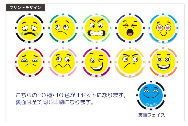 【10個セット】ランダムフェイスデザイン ゴルフマーカー 名入れ ゴルフコンペ 景品 賞品 参加賞 記念品 販促品 ノベルティ オリジナル 記念品