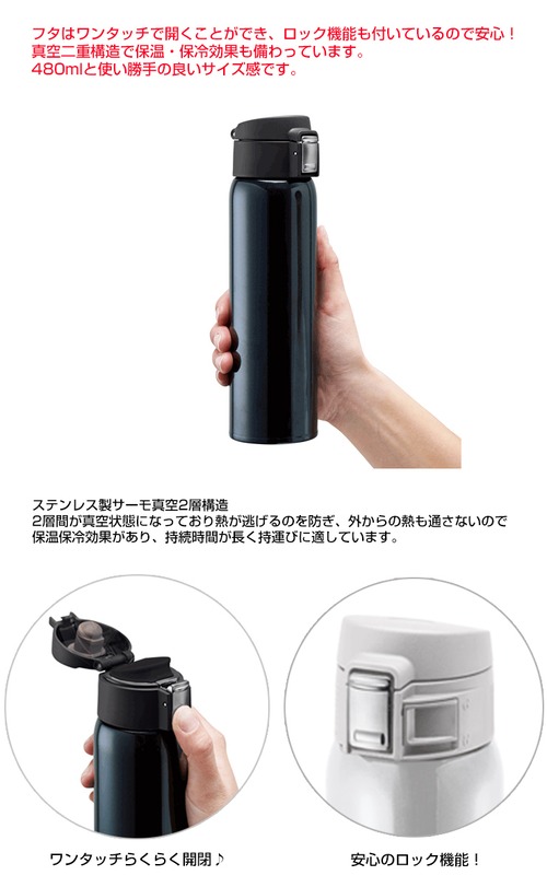 完全カスタム ワンタッチカービングサーモボトル 480ml (全3色)