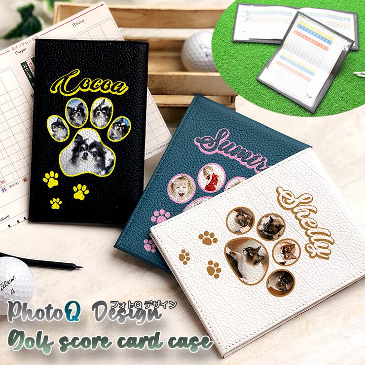 フォトQデザイン 写真印刷 名入れ 革製のゴルフスコアカード用ケース(3タイプ)