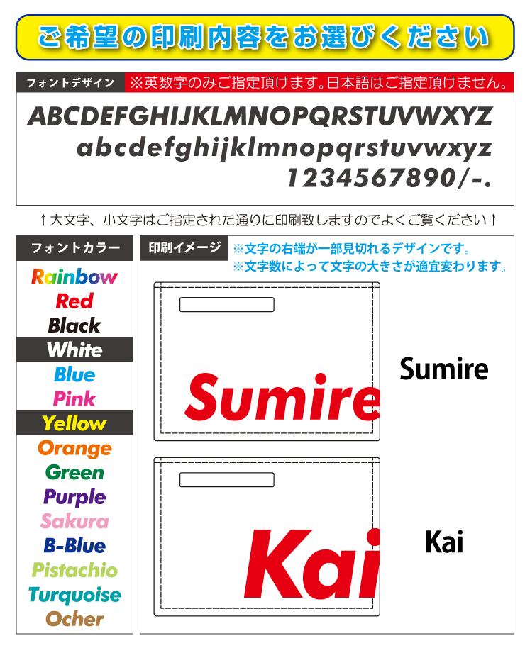 ※名入れする英語は必ず備考欄にお書き下さい。(大文字と小文字もそのままプリントするのでお間違いないようお願いします。)