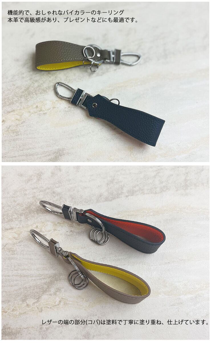 バイカラー レザーキーリングは、あなたのスタイルに合わせて使い勝手のいいおしゃれなアイテム。