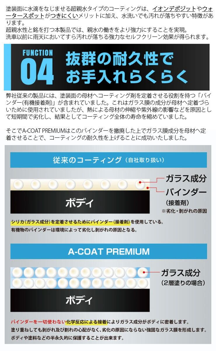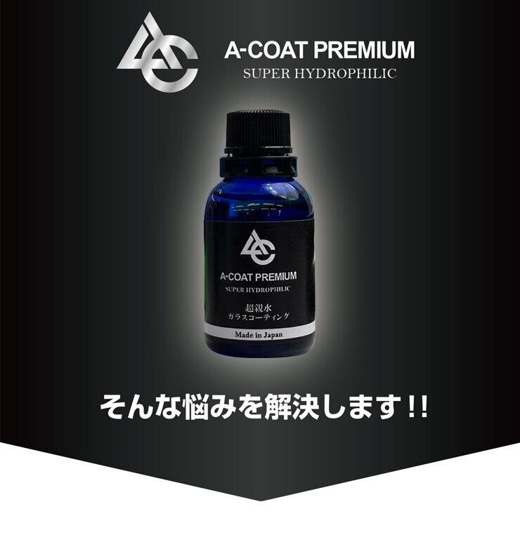 誰でもプロ仕様の超親水ガラスコーティング剤 A-COAT PREMIUM 親水 コーティング剤 カー用品 洗車用品 初心者の方も簡単! Aコート ガラスコーティング ワックス カーコーティング バス タクシー トラック 車