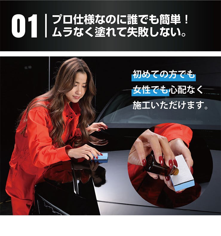 3、ボディ以外にパーツやカラーも選ばず使える!新時代の本格ガラスコーティングです。