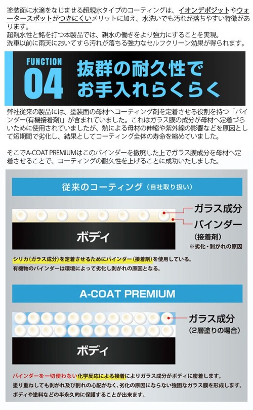 新時代到来!炭酸水仕上げで耐久性抜群。誰でもプロ仕様の超親水ガラスコーティング剤 A-COAT PREMIUM